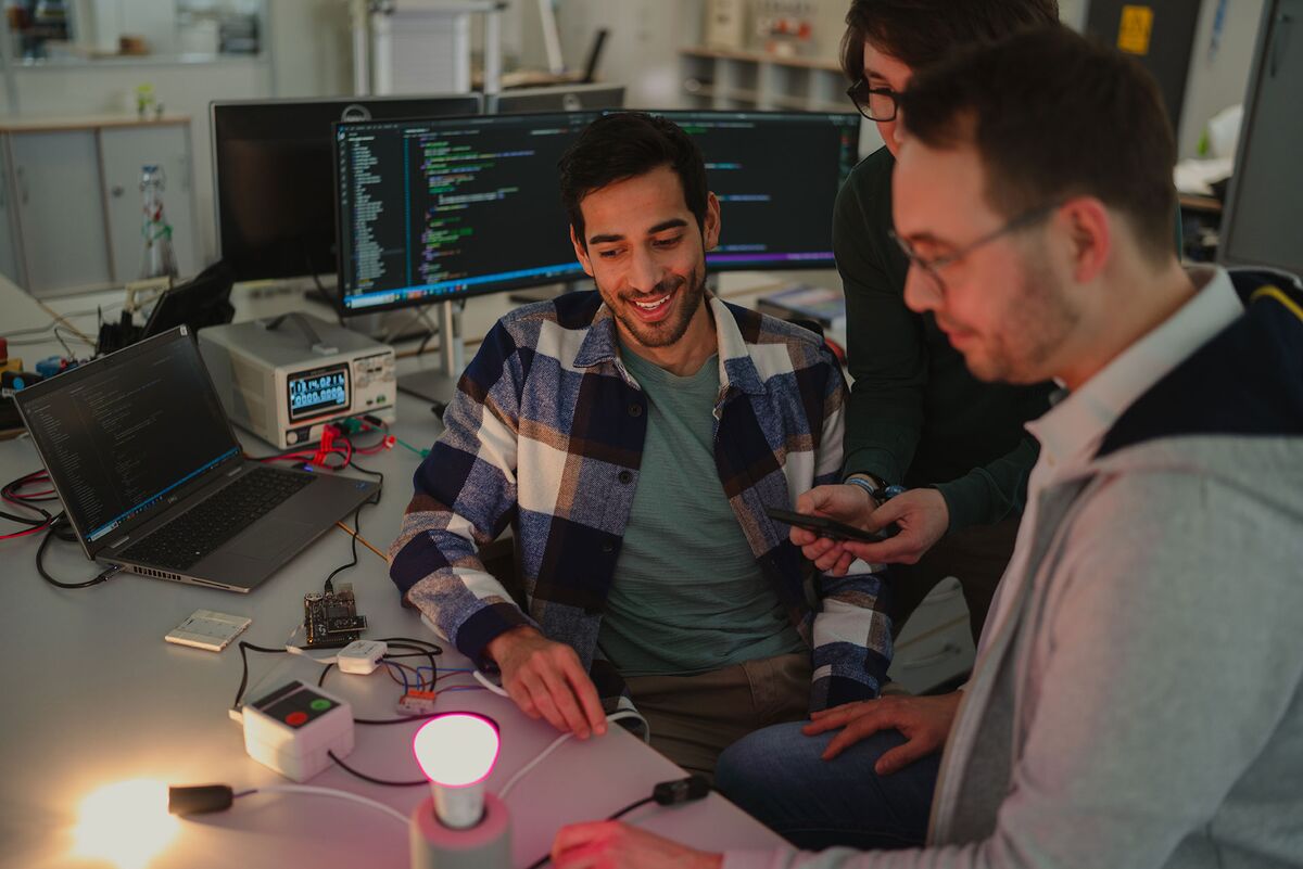 Neben deinen technischen Fähigkeiten, die für die spätere Arbeit erforderlich sind, musst du auch über gute Kommunikationsfähigkeiten verfügen. Du musst in der Lage sein, deine technischen Konzepte und Lösungen in verständlicher Weise unseren Kund*innen und Mitarbeiter*innen zu erklären und mit anderen Teammitgliedern effektiv zu kommunizieren.