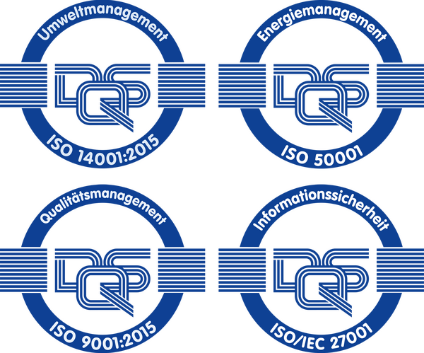 Wir sind ISO 9001, ISO 14001, ISO 50001 und ISO/IEC 27001 zertifiziert...
